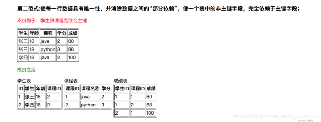 第二范式: 在第一范式的基础上更进一层,目标是确保表中的每列都和主键相关(一是表必须有一个主键;二是没有包含在主键中的列必须完全依赖于主键,而不能只依赖于主键的部分)