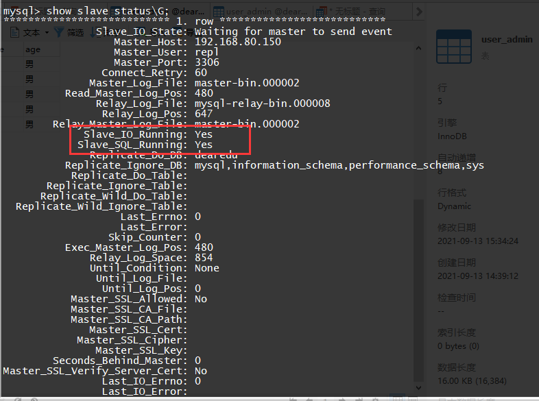 当看到上图 IO 和 SQL线程状态为YES时,说明配置成功