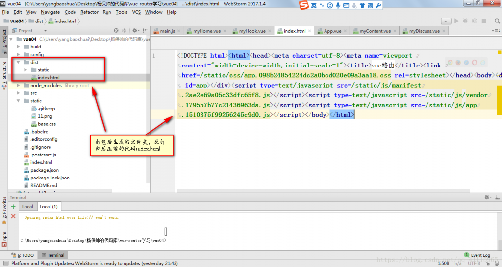 此时点击index.html,通过浏览器运行便,会发现动态绑定的static的图片找不到,故static必须使用绝对路径。将图片路径修改为绝对路径,至此,打包完成。