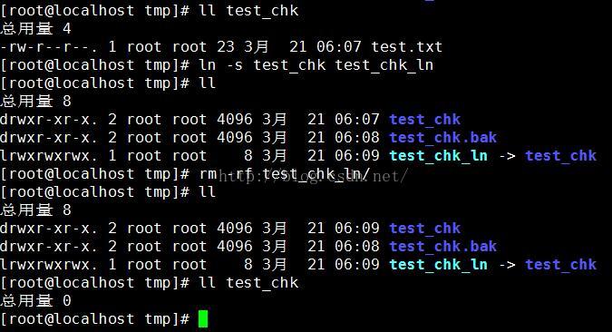 rm -rf ./test_chk_ln/ (这样就会把原来test_chk下的内容删除)