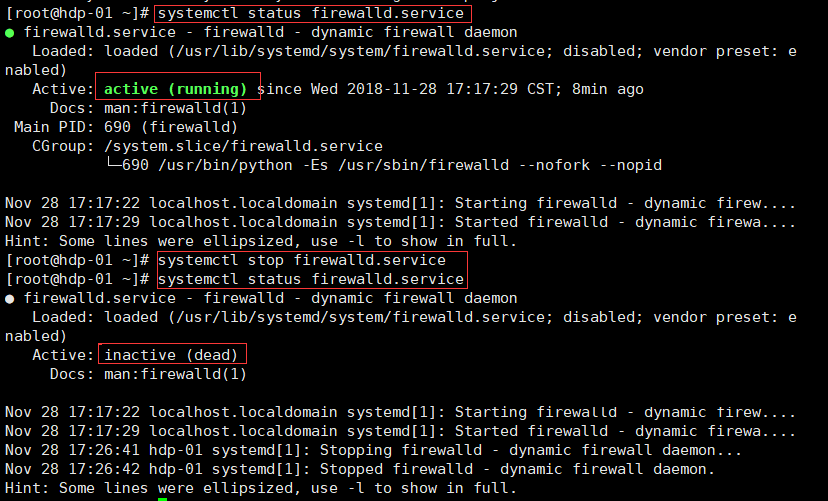 再次执行查看防火墙命令:systemctl status firewalld.service