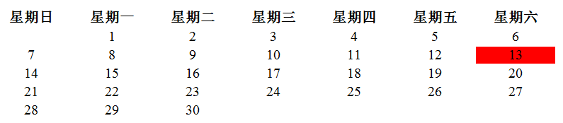 //4.2、依次的循环日期数,当 $i % 7 时,说明是下一个星期,需要换行