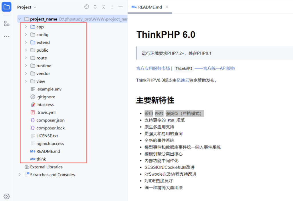 安装时如果我们不知道版本的话,会安装基于当前php版本的最新版本的thinphp框架。