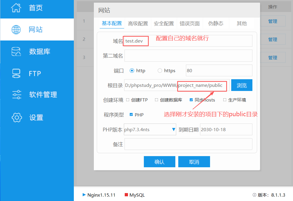 在phpstudy的控制面板》网站,简要配置如下: