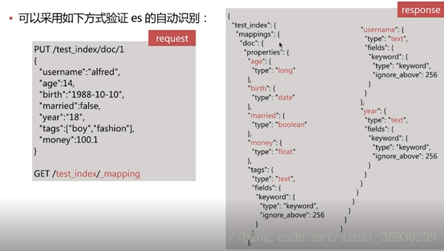 es是依靠json文档的字段类型来实现自动识别字段类型的:
