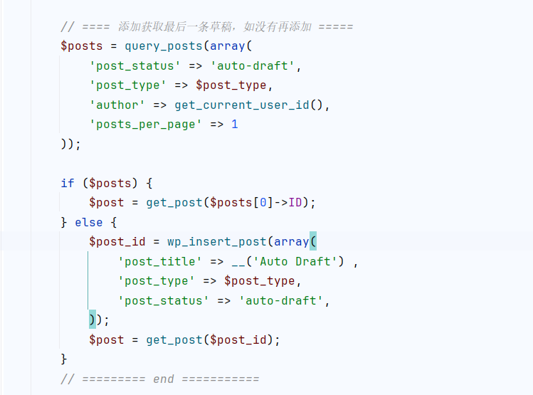 // ==== 添加该段代码start (获取该用户的最后一条自动草稿,有就使用,如没有才创建) =====